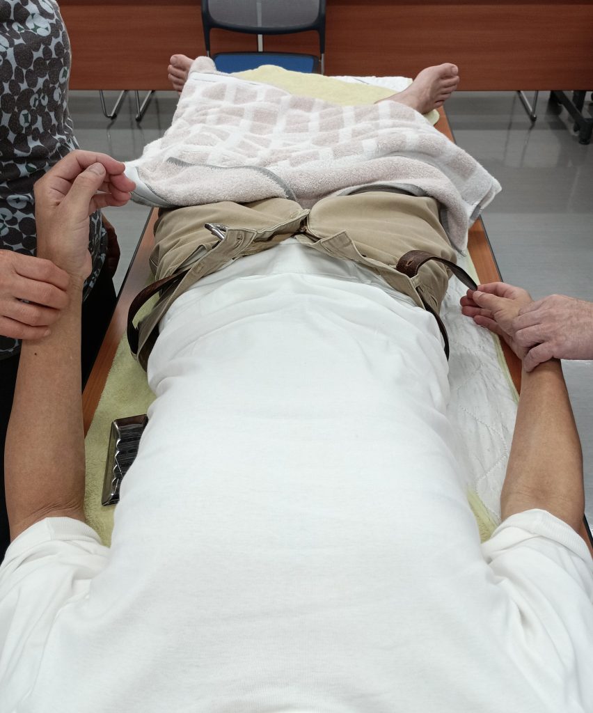 刺鍼後の検脉中のようす